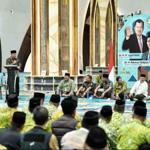 Penjabat Gubernur Jawa Barat Bey Machmudin bersama Ketua Umum Dewan Masjid Indonesia (DMI) sekaligus Wakil Presiden ke-10 dan ke-12 RI Jusuf Kalla menghadiri pelantikan Pengurus Wilayah (PW) Dewan Mas...